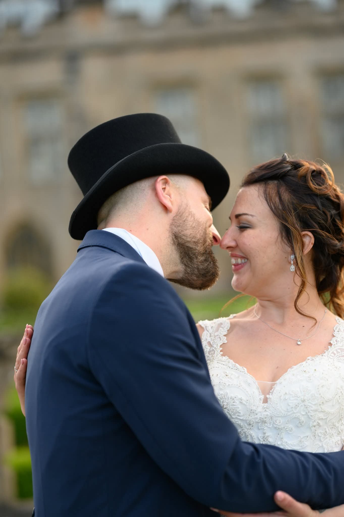 Those natural smiles, hugs and kisses - bride and groom having an intermate moment together - image by Ian Petrie’s Photography at Newstead Abbey Wedding venue
