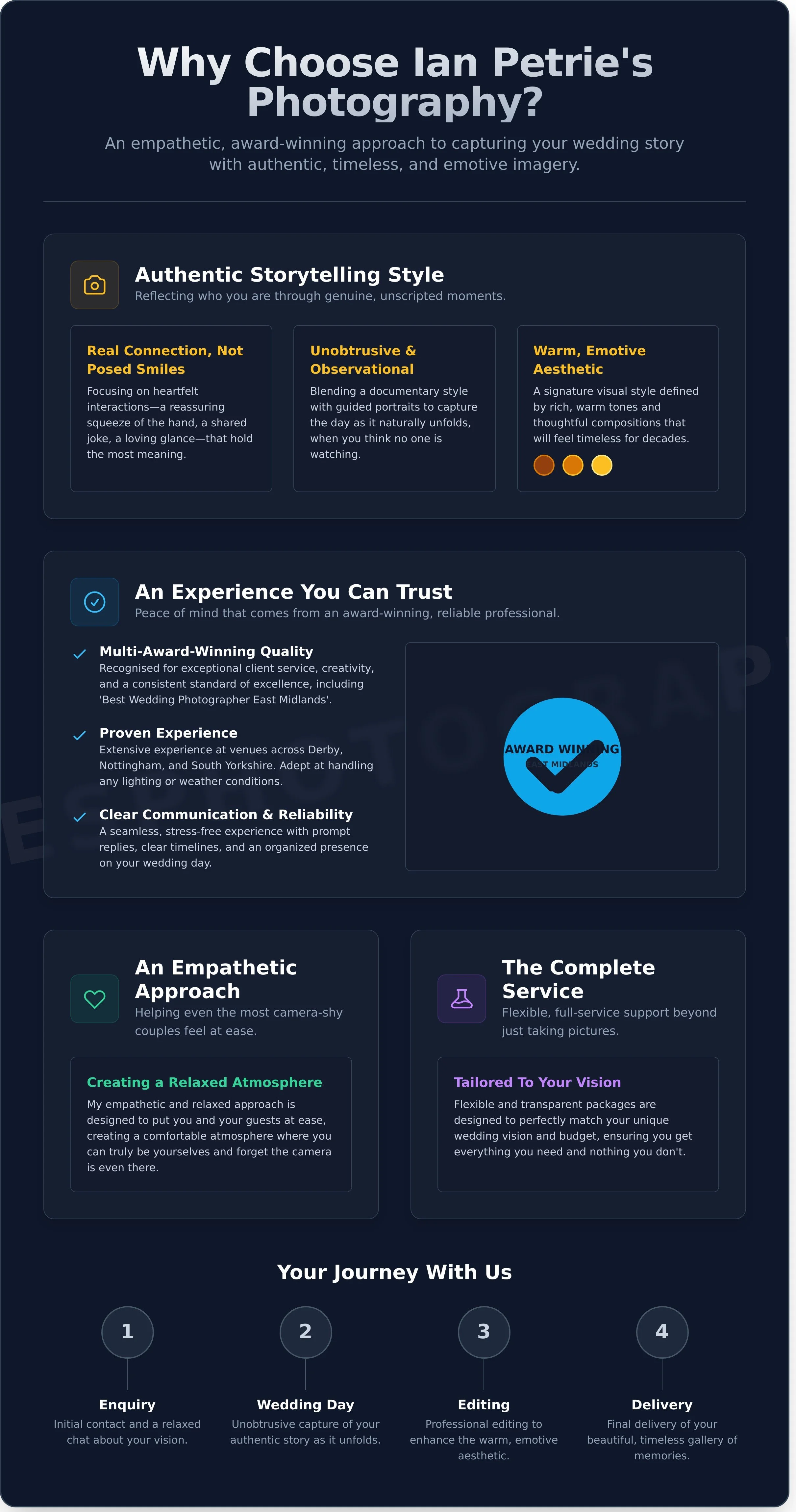Understand why you should consider booking Ian Petrie's Photography for the peace of mind that comes with a trusted, award-winning professional.